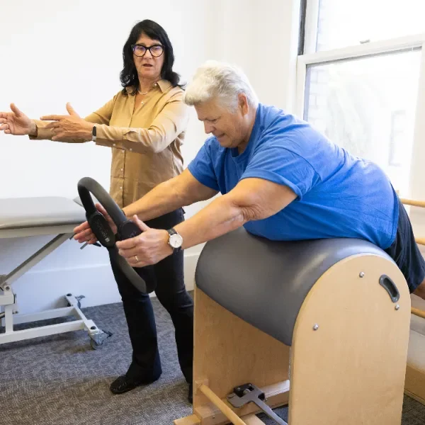 What really made the difference for Melinda was that her care extended beyond the shoulder. She participated in Somatic Pilates, which focuses on breath, alignment, and gentle core support to reduce compensatory tension in her neck and upper back. We also provided tips on sleep positioning to reduce her nighttime symptoms and walked her through several stress-reduction strategies, as persistent stress can heighten pain sensitivity.